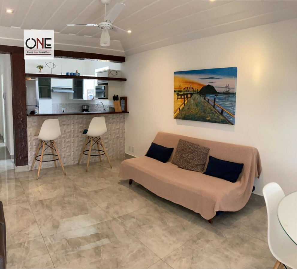 A sala possui um confortável sofá-cama de casal ,mesa com 4 cadeiras, ventilador de teto e TV .