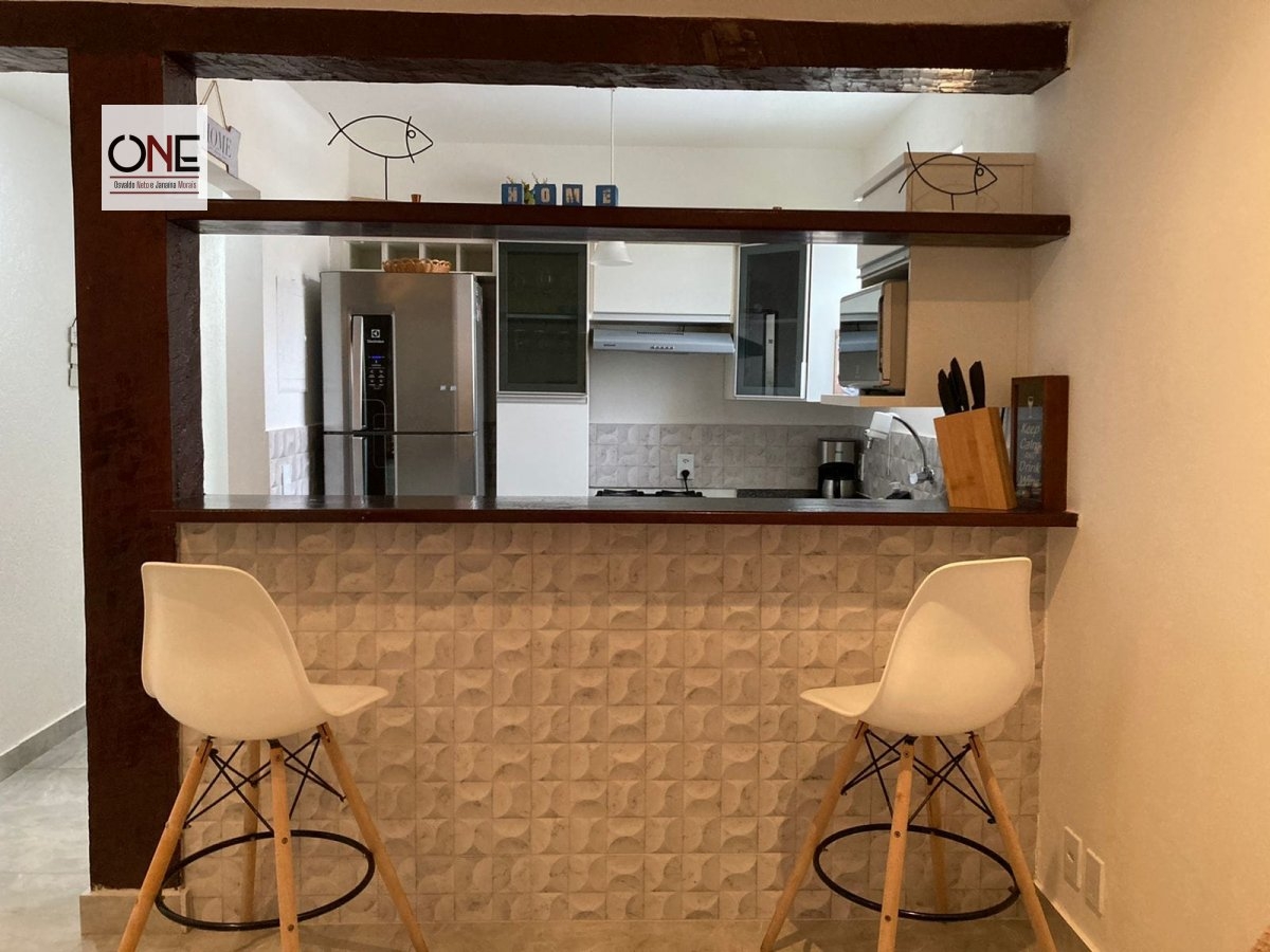 A casa possui uma cozinha americana com banquetas altas, Refrigerador Frost Free, microondas, sanduicheira, liquidificador, cafeteira elétrica, fogão, panelas, taças de vinho, champagne, copos , pratos e etc.